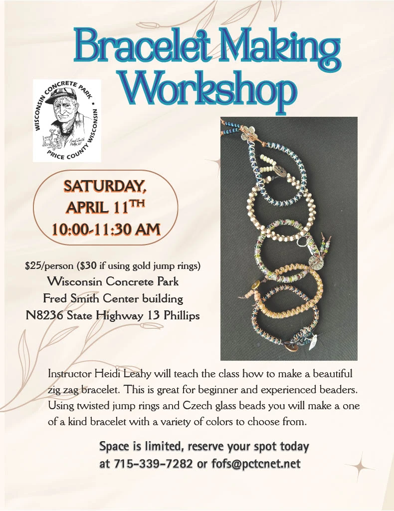 Instructor Heidi Leahy will teach the class how to make a beautifulzig zag bracelet. This